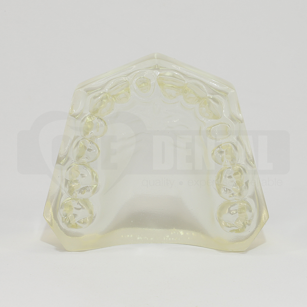 Clear hard upper model with a crown prep on the 11 and 24 teeth. Ideal for taking impressions, making crowns etc